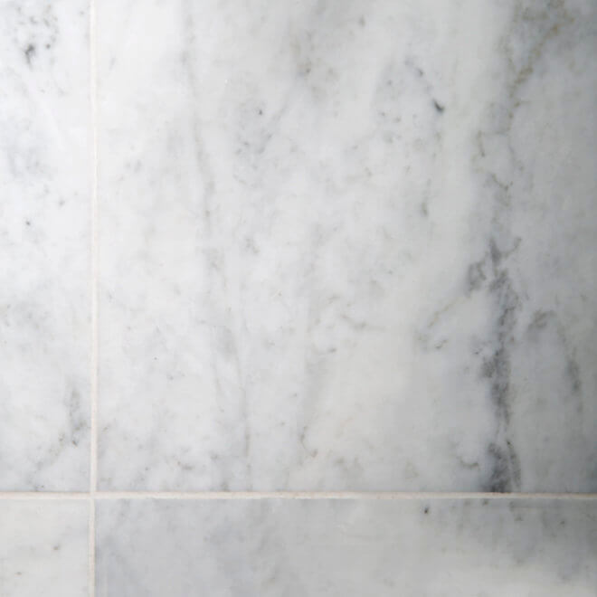 We kept things clean and simple in this cozy 5Γ7β room. The classic marble tiles were installed in a straight pattern to give the illusion of a longer space. The baseboard heater was given a modern update, but still gives a nostalgic nod to the era of the home and historic radiator covers.