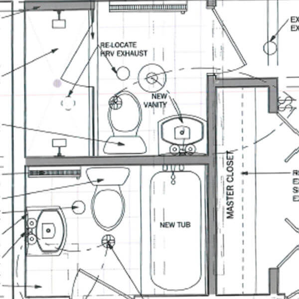 This Lower Sackville family of 7 was quickly outgrowing their only bathroom. Case designers listened carefully to their needs and came up with the perfect solution. By dividing the bathroom in two, we were able to create a new place for the kids to bathe, as well as a private ensuite for the parents. Â We even gave the master-suite some much needed storage by creating a mirrored double-sized closet along the new wall.