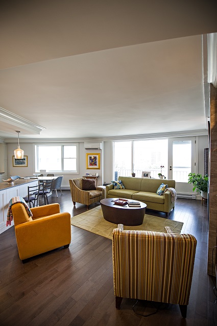 We took on this condominium renovation with the goal to explore alternative layouts followed by detailed product design and selection. We designed and renovated a new kitchen, living room, foyer, main bathroom, ensuite bathroom, and bedroom features.